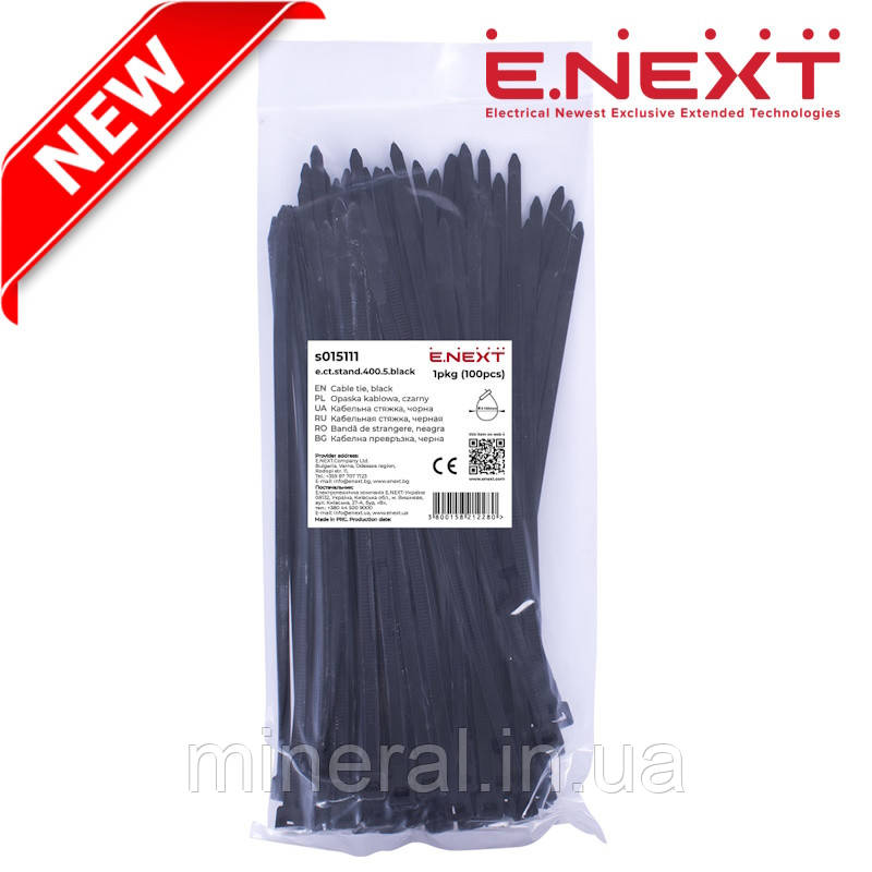 Стяжка кабельна 200х5 (100шт), чорна, Хомут пластиковий, E.NEXT